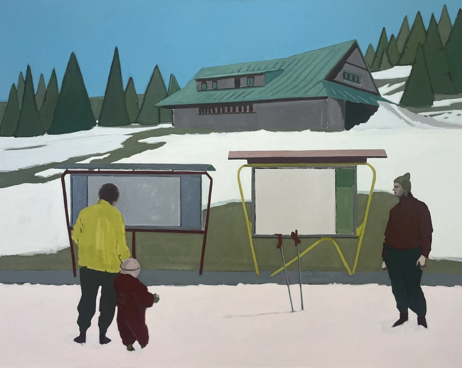Jako byste se zase ocitli na škole v přírodě odehrávající se v Krkonoších. I takovou atmosféru nesou obrazy absolventa Akademie výtvarných umění v Praze Ondřeje Mesteka. Jeho plátna vás přenesou do míst horské turistiky plných lyžařů a v mžiku vás vrátí do dětských let či na stránky rodinných alb.