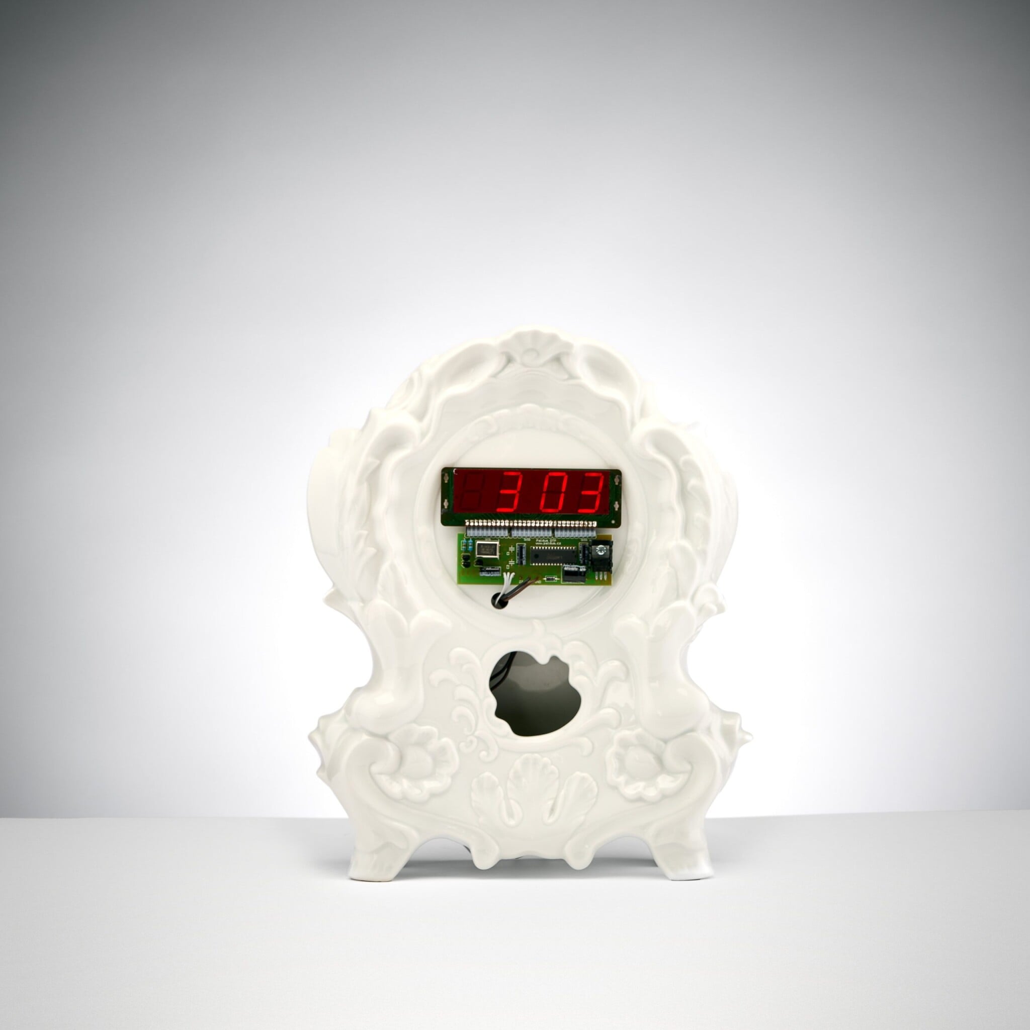 Podobně se zrodily i Maximovy dnes již ikonické hodiny Digi Clock, jejichž původní porcelánový korpus vycházející z rokokového tvaru našel v porcelánce v Loučkách. Prodávaly se s ručičkami a číselným ciferníkem, zdobené různými ornamenty.