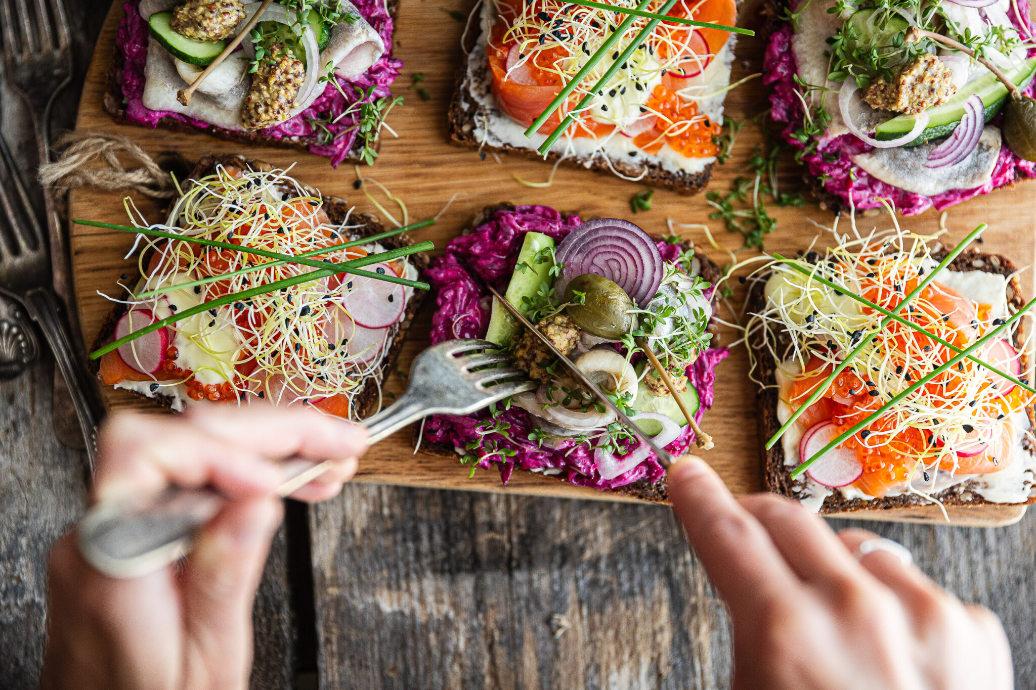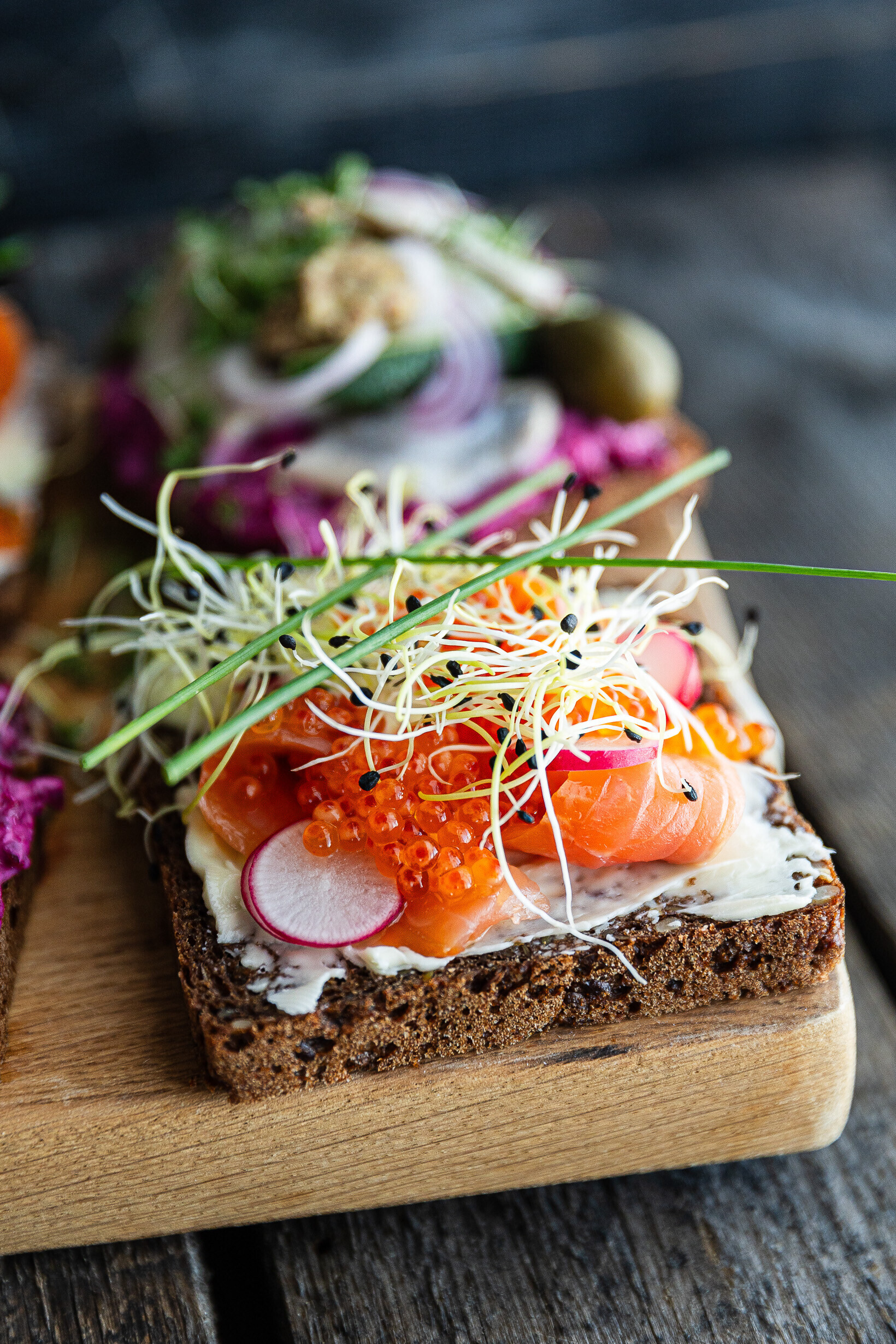 Jednou z mnoha populárních variant je právě ta se sleděm či lososem. Dalšími oblíbenci jsou „leverpostej“ (žitný chléb s játrovou paštikou) či verze s roastbeefem (podle našeho receptu si upečte jemný telecí nebo klasický hovězí roastbeef). Výjimkou na chlebu není ani úhoř, masová roláda či vejce a sýry. Připravují se varianty vegetariánské i veganské, avšak, kdo nemá jistá omezení, ryby jsou zkrátka nejchutnější volbou.
