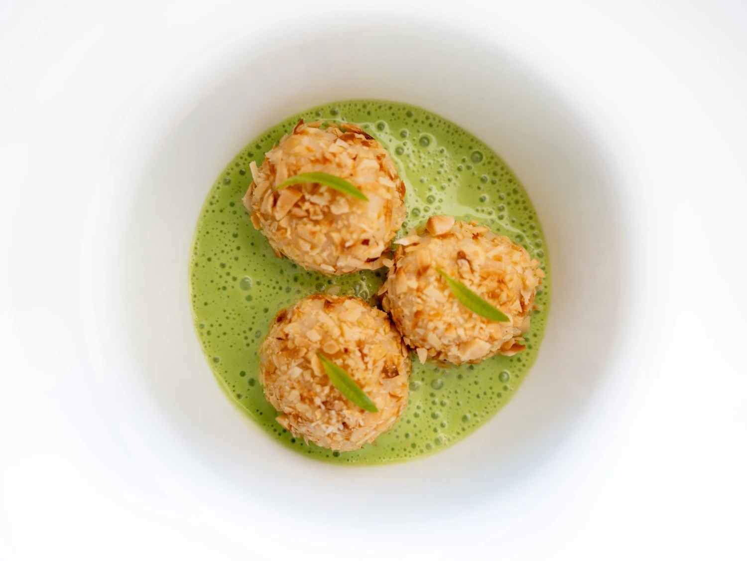 Je krémový, lehce kyselý, tak akorát sladký, herbální tóny dodává bylinkový olej, má několik textur a teplot a lehkou slanost karamelu, která všechny chutě zvýrazní. A aby toho nebylo málo, na konci ještě přijdou petits fours, sladká tečka třeba s některým z domácích likérů, které si v Essens sami vyrábějí.