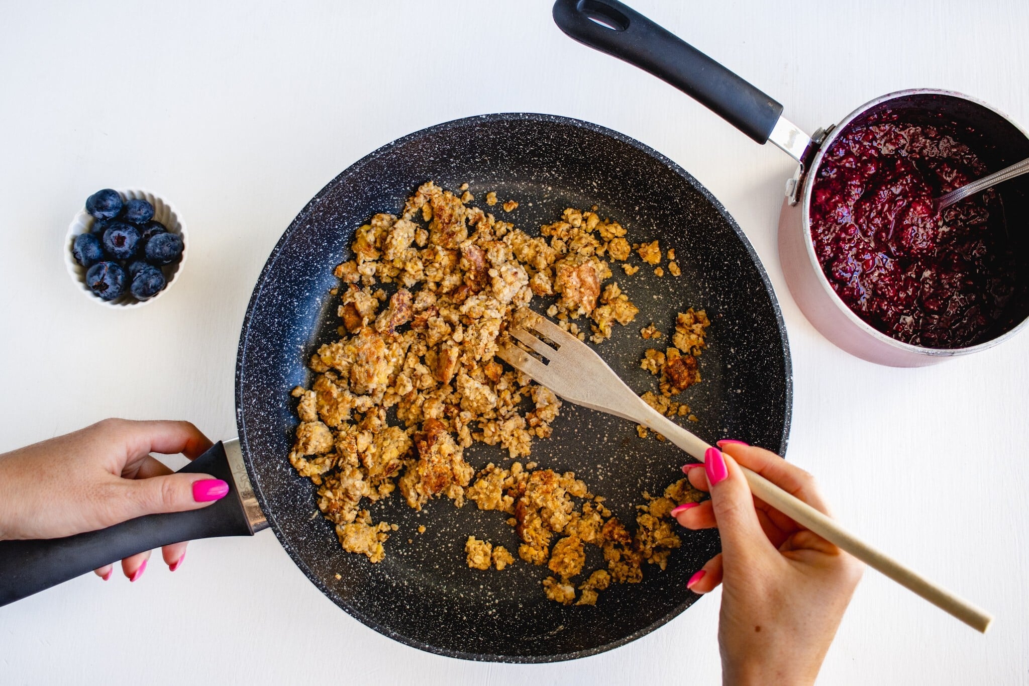 Míchané ovesné vločky / rychlá granola z pánve (scrambled oats) + chia džem bez cukru