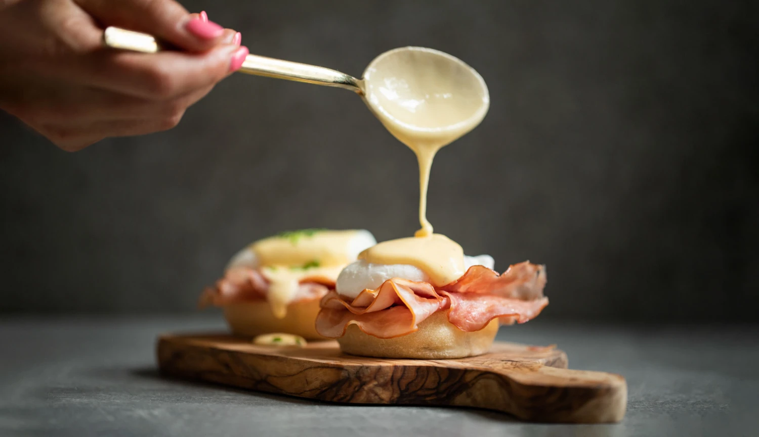 - V širokém hrnci přiveďte k varu osolenou vodu s trochou octa, pak oheň ztlumte, aby voda byla jen těsně pod bodem varu, ten by totiž vejce roztrhal. Vajíčko vždy rozklepněte do hrníčku či misky, lžící ve vodě vytvořte malý vír, vejce do něj jedno po druhém opatrně vlijte a pošírujte je 3,5 minuty. Poté je vyndejte děrovanou lžící na talíř.