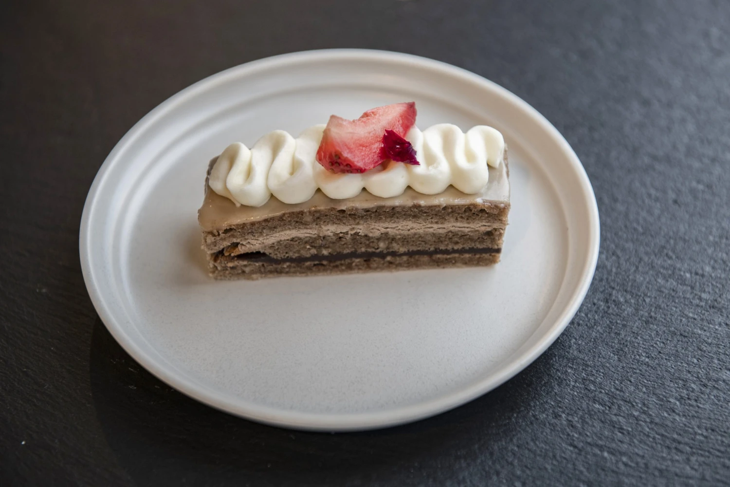 Kromě populárního křiklavě zeleného nápoje si zakládají i na vlastní výrobě dezertů. Vyplývá to z filozofie japonského pohostinství, kde se zákusky podávají k čaji nebo kávě. Tuto část provozu má na starosti Leova sestra a mohly by konkurovat kvalitním cukrárnám, třeba perfektní choux z odpalovaného těsta nebo tak akorát sladký višňovomučenkový řez.