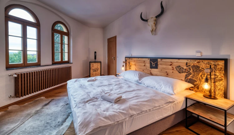 Jednotlivé relaxační zóny a koupelové boxy jsou pro soukromí hostů odděleny skleněnými tabulemi z barevného skla, jež vyobrazuje mnichy při vaření piva. Na filigránsky vyvedeném zábradlí schodiště rozpoznáme motivy kotlíků, rytířů, pivních sudů, přírody a dalších detailů, které dotváří příběh Bath & Barley.
