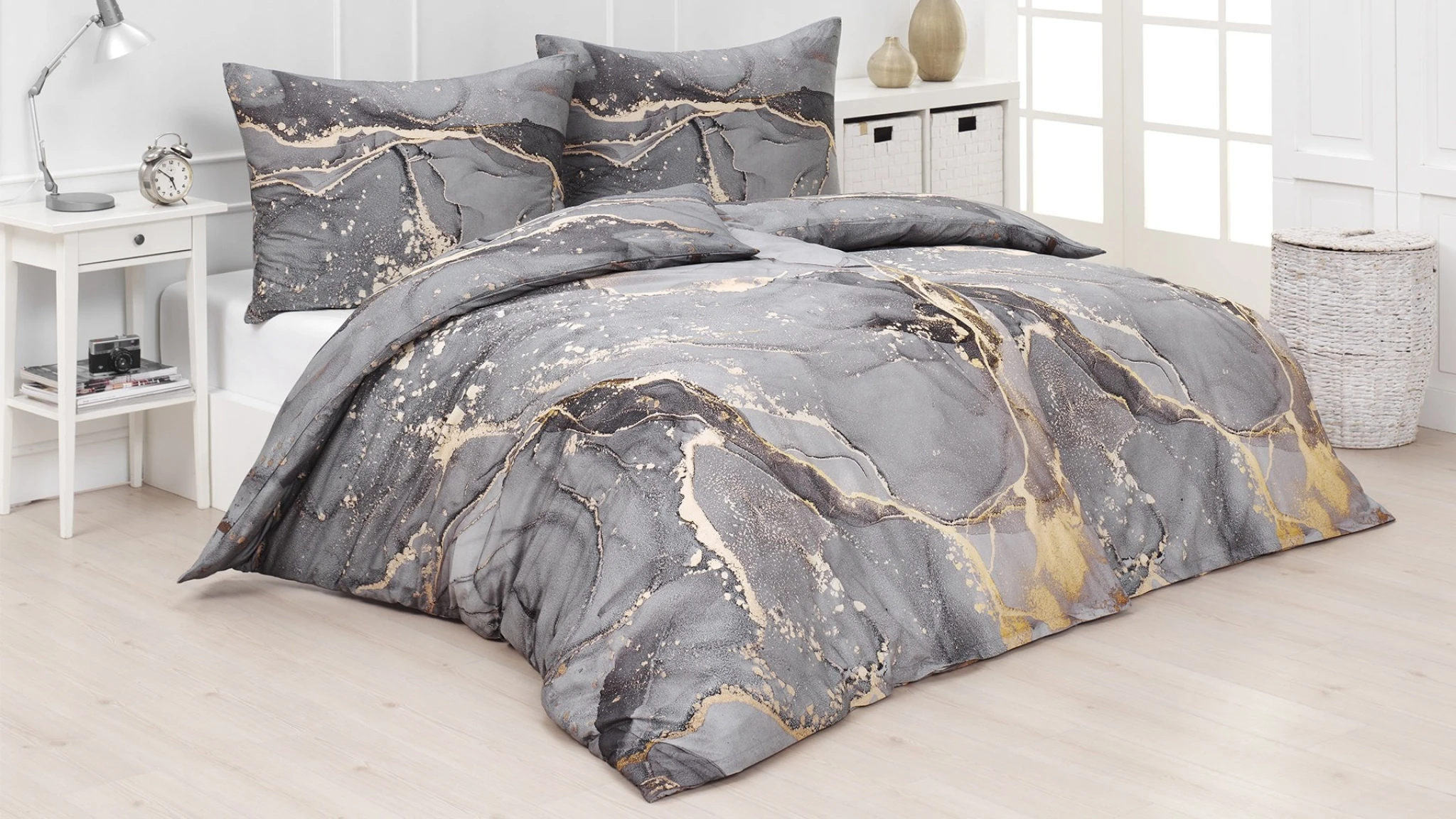 Ložní povlečení Laura v mramorovém motivu šedých, béžových a jemně zlatavých tónů je ušité z příjemné bavlny deluxe značky Matějovský. Nadčasový vzor a komfortní materiál přinášejí do ložnice klidný, útulný charakter. Toto je dárek, který se skutečně využije a ocení každý večer.