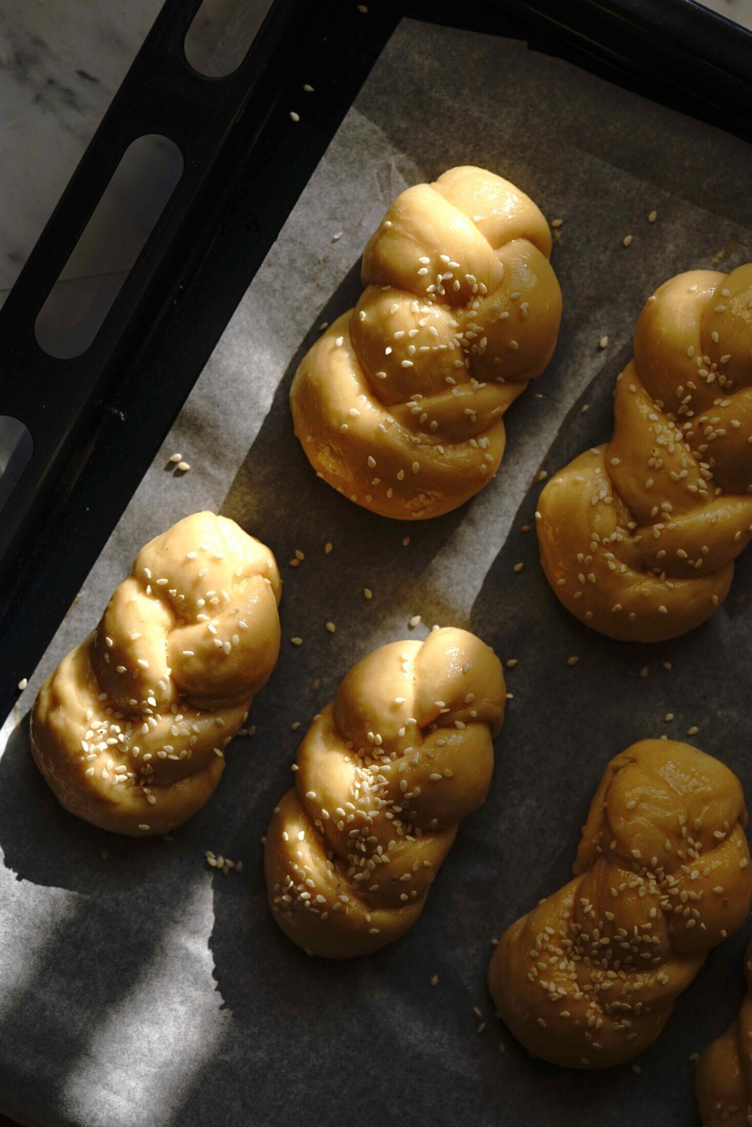 Když chcete vědět, jak chutná nebeská mana, upečte si toto tradiční židovské pečivo, protože právě to má být připomínkou, jak Židům při putování z Egypta padala z nebe. Tradičně se dodnes peče v předvečer Šábesu. Chuťově připomíná nadýchanější vánočku a sype se nejčastěji sezamovými semínky. Dnešní recept je její mini snídaňovou verzí.