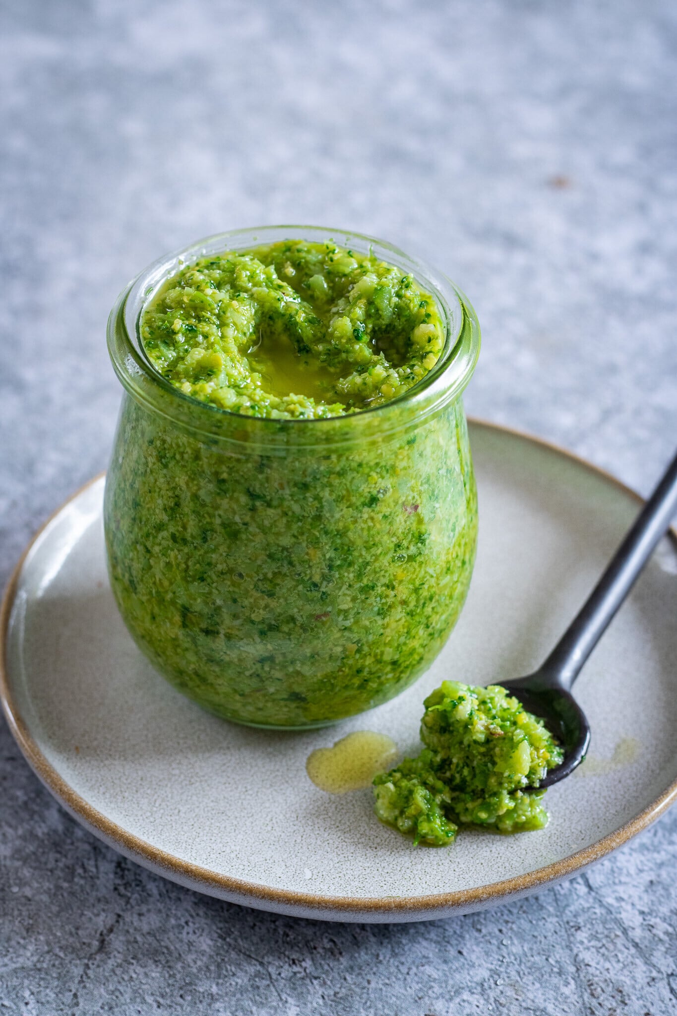 Ne každý miluje tu krásně zelenou brokolici s osobitou vůní. Když ji ale zakomponujete do pesta, získáte velice originální dochucovací prostředek. Bez váhání jej použijte na těstoviny, skvěle ale chutná také na opečeném chlebu v kombinaci se sýry jako je mozzarella, ricotta nebo jakékoliv nezrající smetanové sýry. Pesto můžete použít i jako náplň do zapečených hlaviček žampionů anebo jako přísadu do bylinkových dipů ze zakysané smetany k různým zeleninovým plackám.