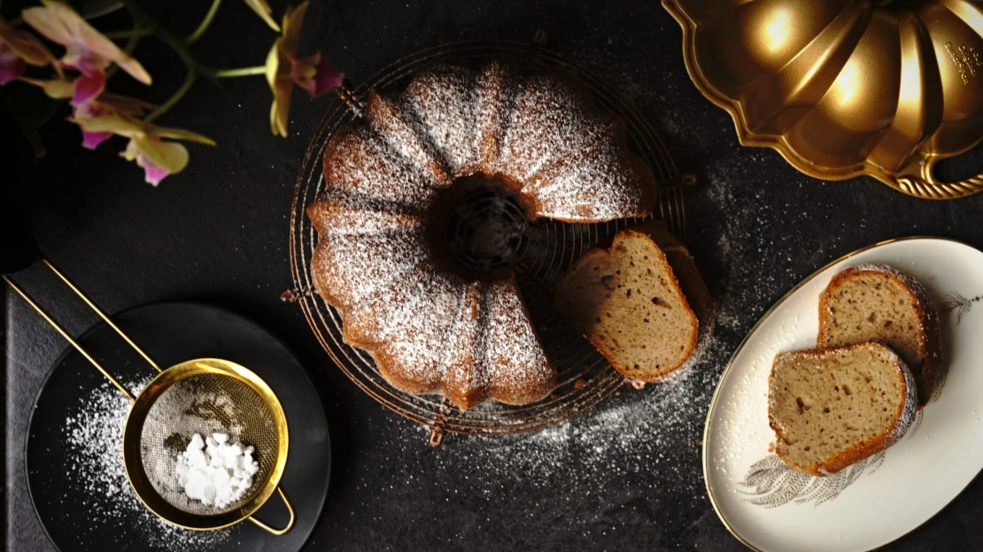 - Bábovku nechte asi 4 minuty odpočinout ve formě, než ji opatrně vyklopíte na drátěnou mřížku. Před podáváním bábovku posypejte moučkovým cukrem.