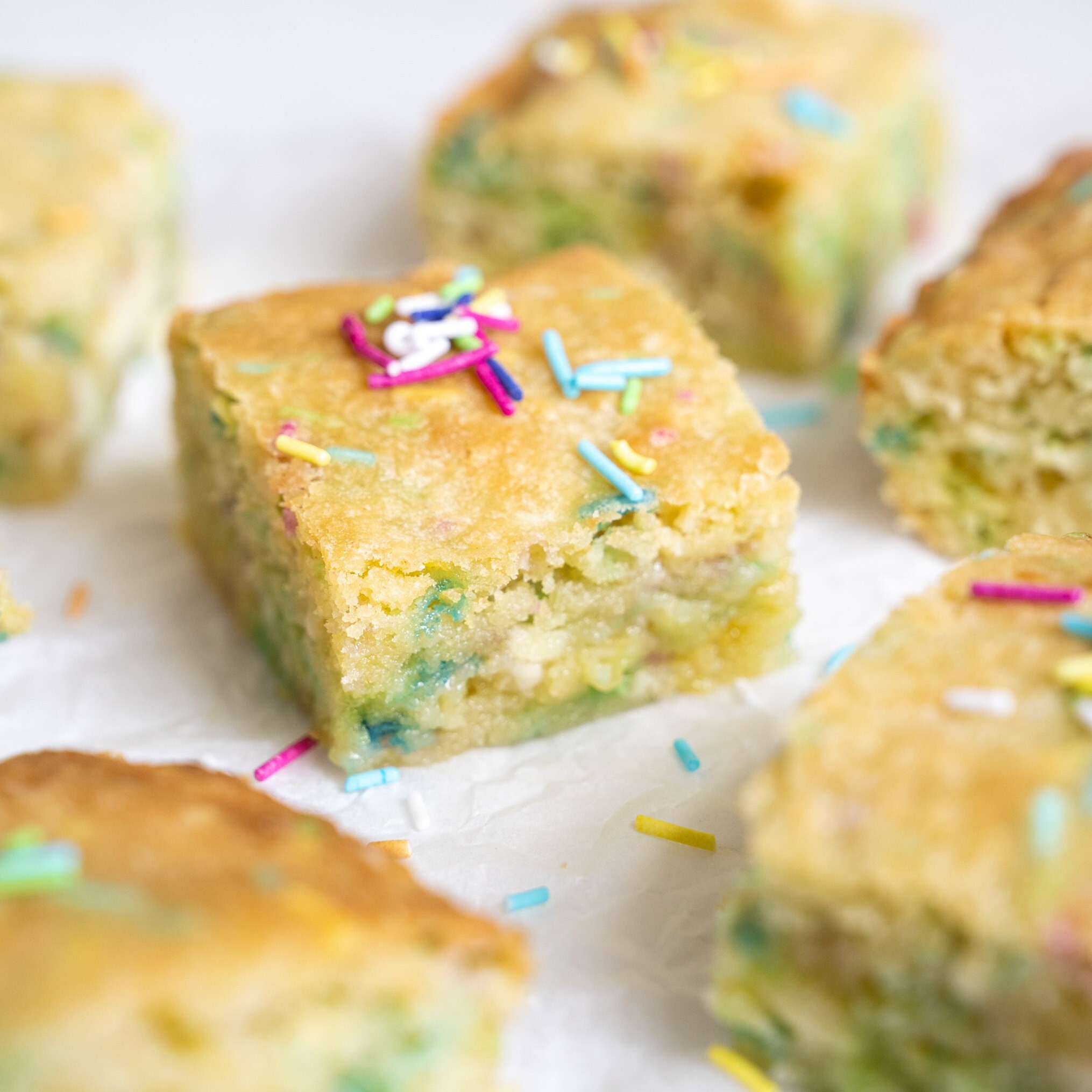 Pokud jste cílová skupina, pravděpodobně jste o blížícím se Dni dětí informováni více, než byste si přáli. Společné pečení, které navíc zahrnuje bílou čokoládu a spoustu barevného zdobení (jehož složení si pro tentokrát nečtěte), může ovšem být příjemnou aktivitou pro všechny zúčastněné, a jako bonus z něj vzejdou lahodné blondie řezy.