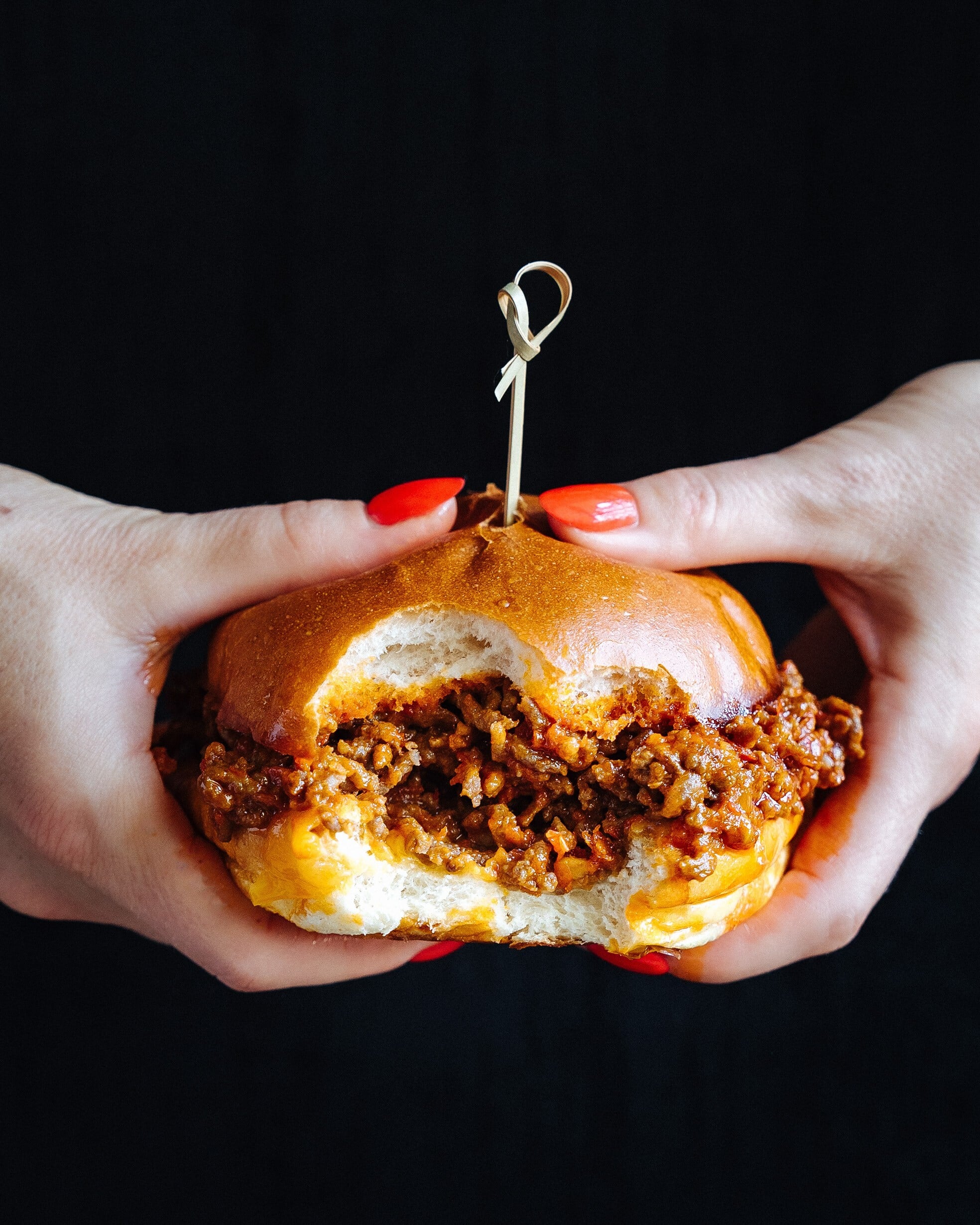 Sloppy Joe lze volně přeložit jako „upatlaný“ nebo „lajdácký“ Joe. A přesně to od něj čekejte: měkká máslová bulka, rozteklý sýr a hromada šťavnatého mletého masa v lehce pikantní rajčatové omáčce, která při každém soustu trochu uteče ven. Jde o rychlý recept, který zvládne každý, ideální na hladové vytížené večery i víkendové party, které nechcete strávit vařením. Pokud máte rádi burgery, ale stresuje vás správné propečení masa, Sloppy Joe bude váš nový nejlepší kamarád.
