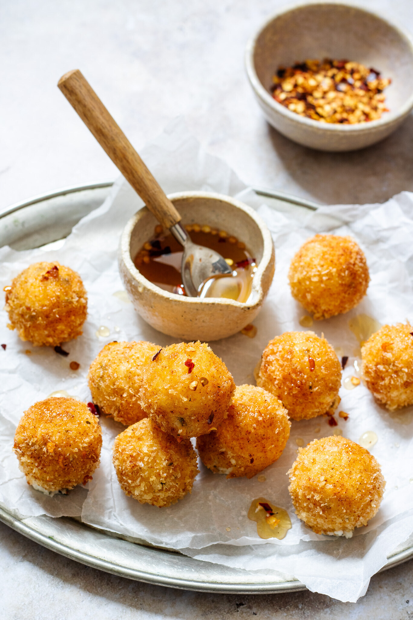 Možná je pro vás představa smažáku odpudivá, ale tento „smažák“ v podobě sýrových kuliček už rozhodně nijak odpudivý není, to mi věřte. Žádný fádní eidam, ale lahodný kozí sýr v křupavém obalu z panko strouhanky. Medová zálivka k tomu… Tohle není fastfoodová záležitost, ale delikatesa, která potěší i velké gurmety.