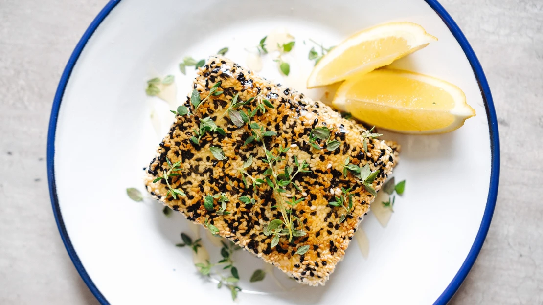Výrazný, lehce se roztékající sýr v křupavé sezamové krustě doplněný medem, voňavým tymiánem a svěžím citronem je rychlá, elegantní a jednoduchá verze smažáku, kterou ohromíte své hosty už za deset minut od nápadu ji připravit.