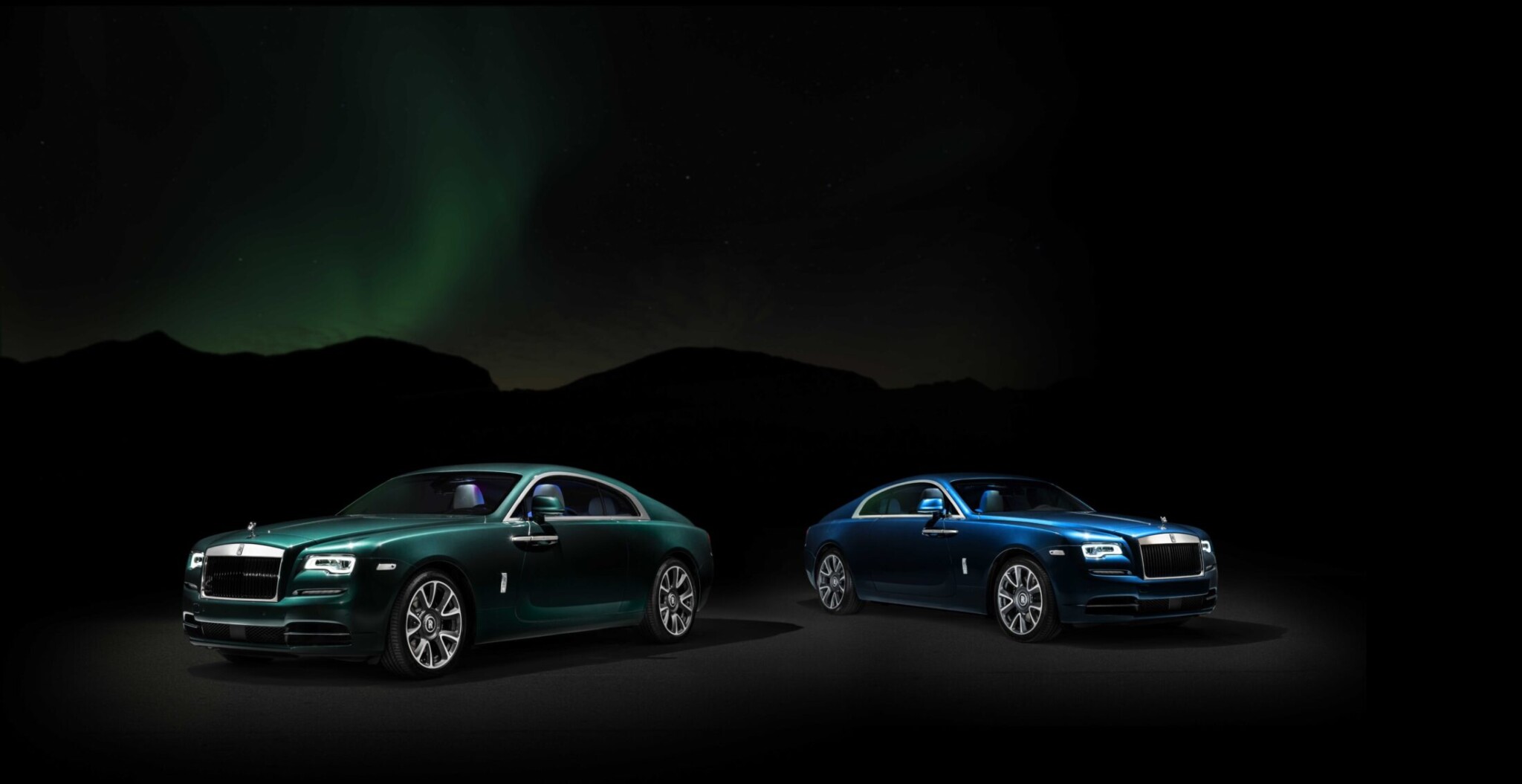 Dva dvoudveřové modely Wraith našly inspiraci v polární záři. Tým Bespoke zachytil její éterickou nádheru prostřednictvím dvou nových odstínů laku Aurora Blue a Borealis Green. Interiér auta pak doplnil různobarevnými světly imitujícími noční oblohu kombinací modrých, zelených a bílých „hvězd“ z optických vláken.