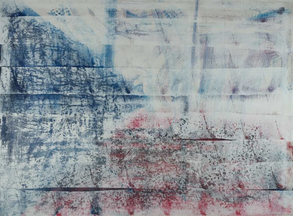 Pomyslný pohyb puku, sítě i sportovce zachycuje formou geometrické abstrakce. Vytiska pak v obraze s expresivním názvem „Smrt dostala pukem přes držku“ vychází ze své typické folklorní poetiky a expresivně pracuje s motivem lebky ve hře na život a na smrt.