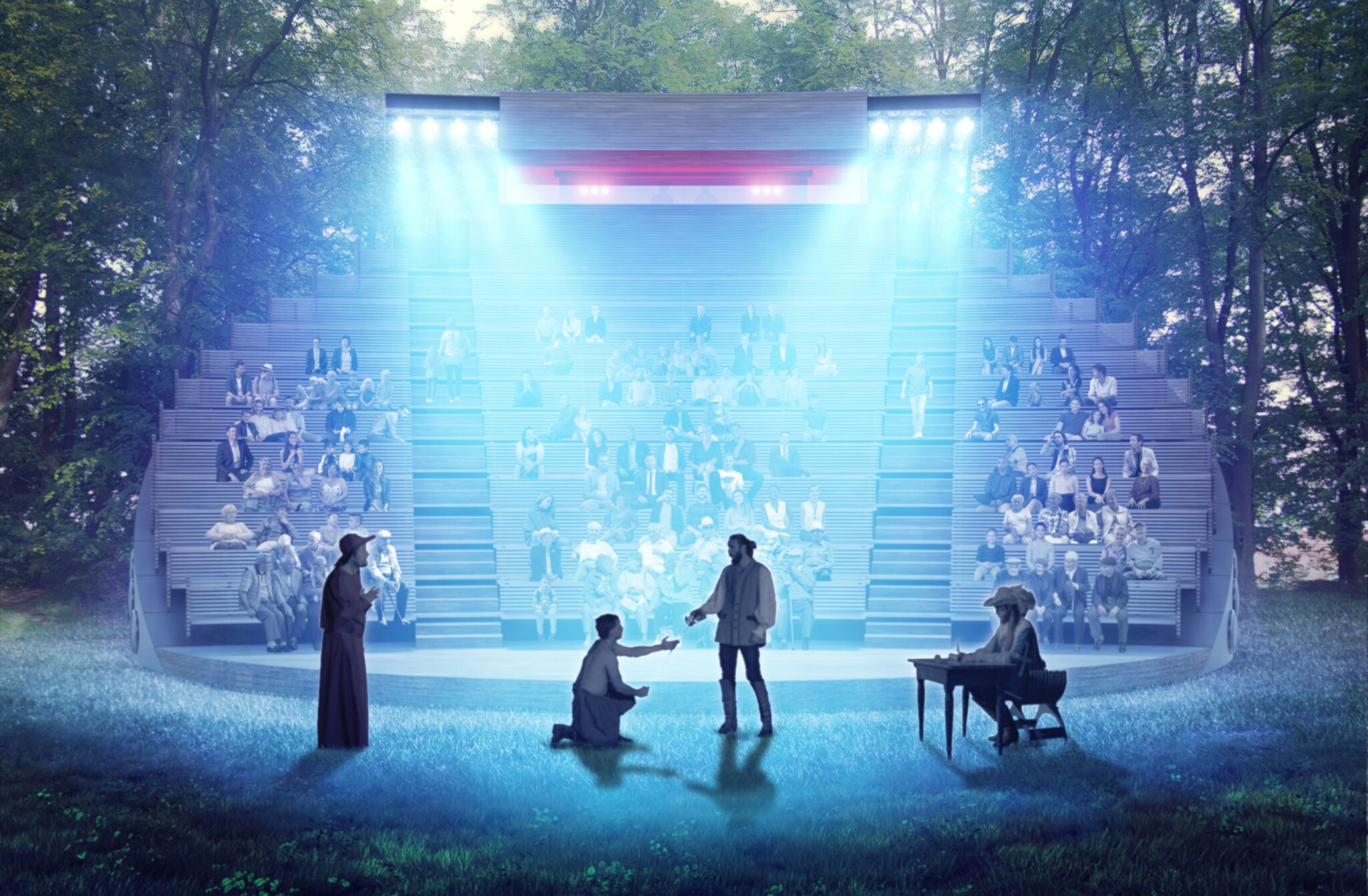 „Světelné čočky nejsou zajímavé ani tak z hlediska technologie, ale hlavně proto, že se celé divadlo stává vlastně takovým pavilonem v parku. Je to takový totem, veřejný objekt, který má i jinou funkci než jen divadlo. Přišlo mi důležité toho využít, aby se divadlo stalo v noci takovou lucernou celého parku,“ popisuje myšlenku nového otáčivého hlediště architekt Petr Jakšík z ateliéru A8000.