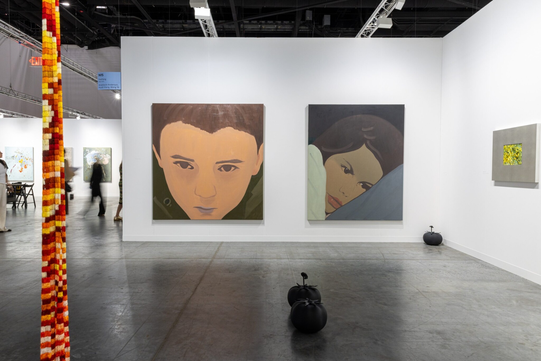 Fotografie z výstavy Imitation of Life, kterou Anastázie Anderson měla v roce 2024 v newyorské komerční galerii YveYANG. Na malbách jsou výjevy z jejího dětství i rodných Únětic. | Foto YveYANG