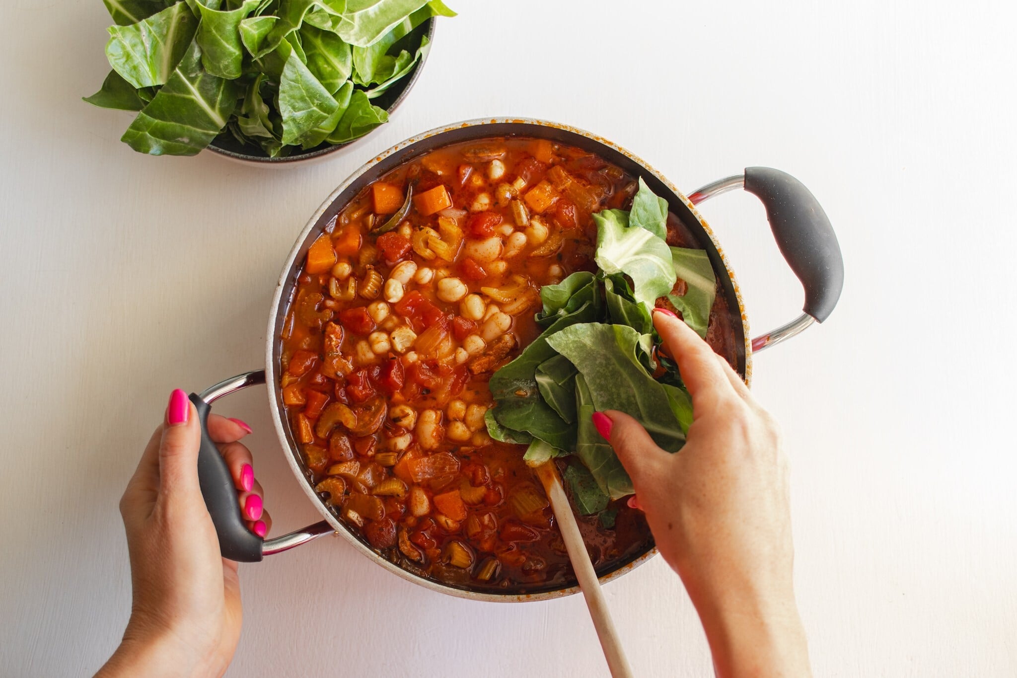 Zeleninová polévka s fazolemi, cizrnou, chorizem a mangoldem